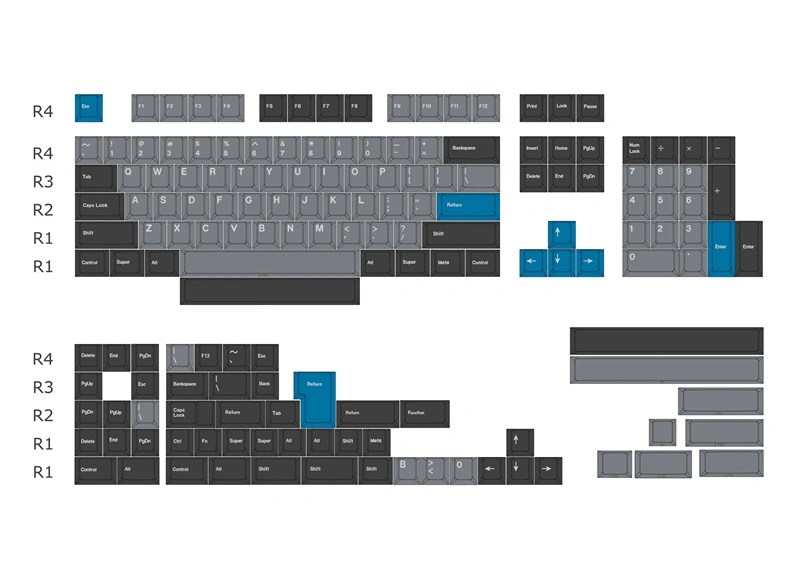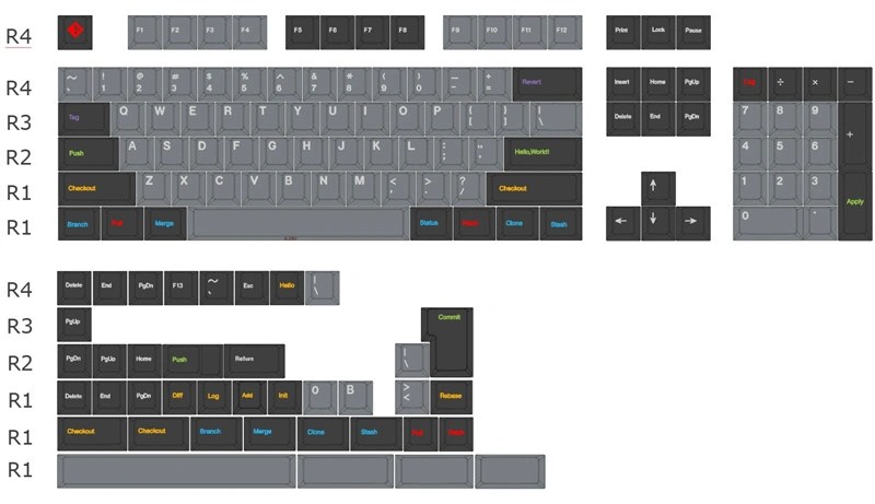 143 keys Git, 142 keys Regular, 158 keys Monochrome